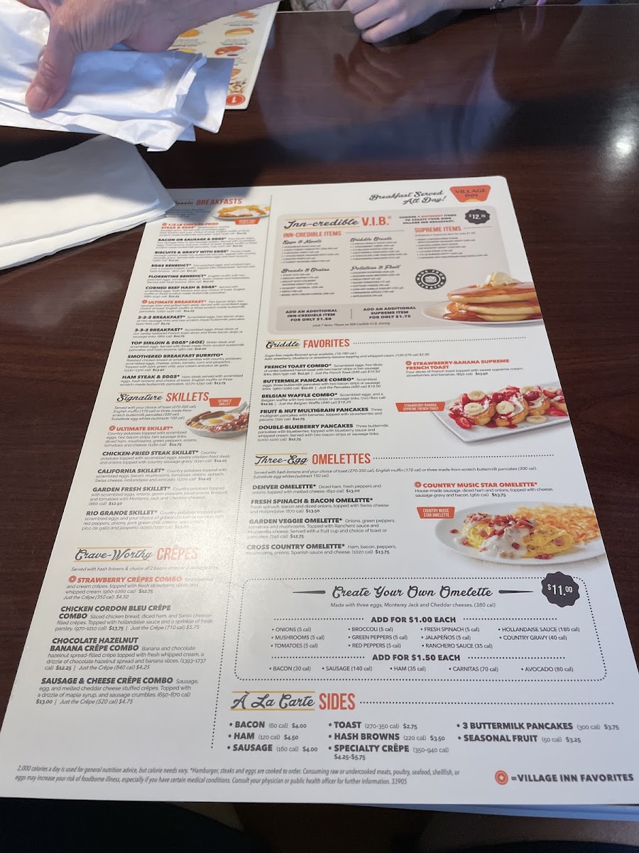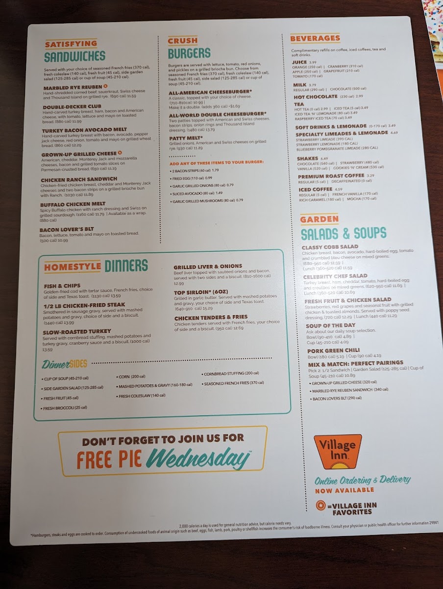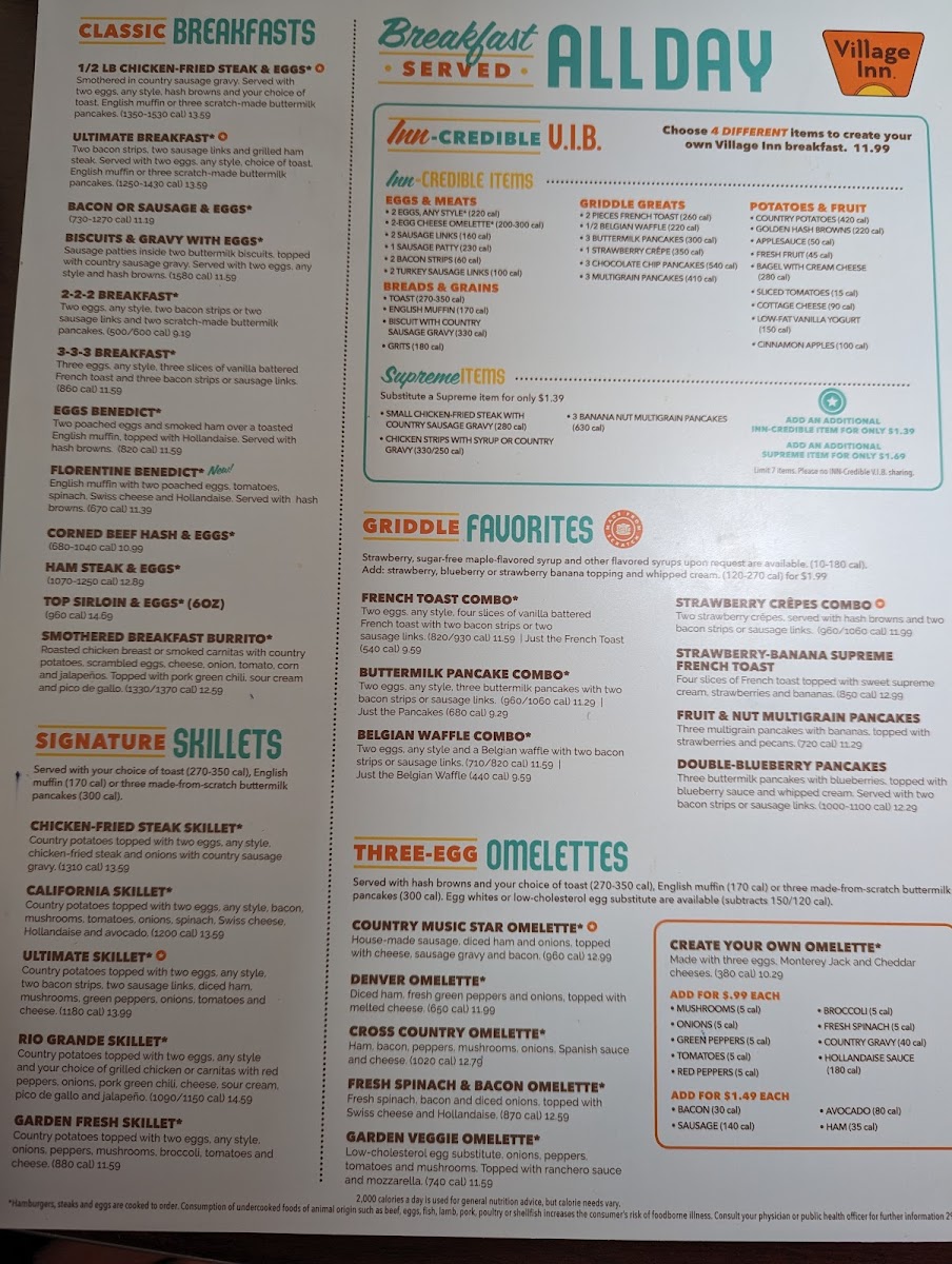 What truly stands out at Village Inn is the balance of home-style flavors with attentive service, creating a personal dining experience. Customers rave about the perfectly cooked breakfast options, emphasizing friendly staff who enhance every visit. Whether you’re seeking a quick, reliable morning meal or a slice of fresh pie in a welcoming family setting, Village Inn’s menu delivers warmth, flavor, and nostalgia all on one plate.